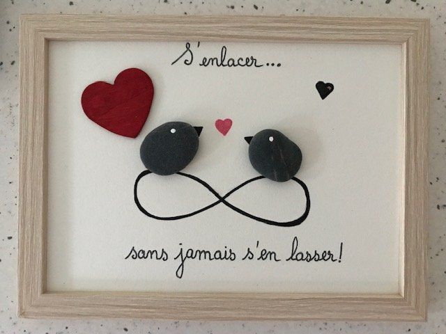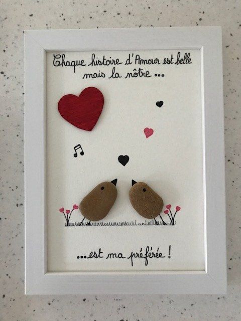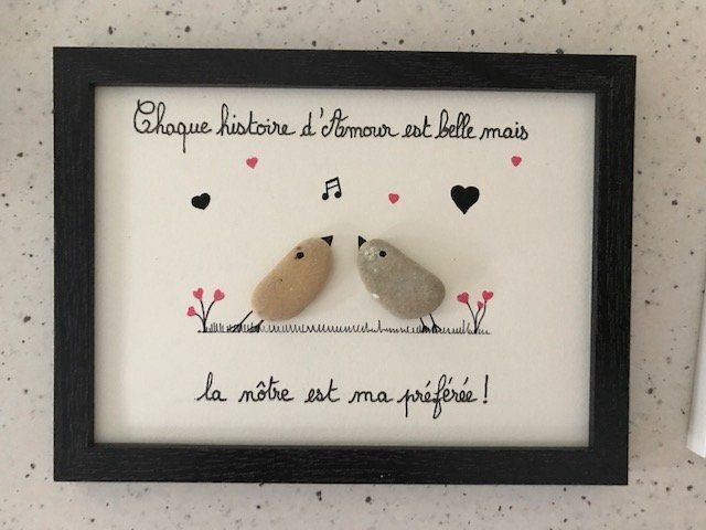 Cadre galets de dimension 13X18 cm, choisissez votre cadre préféré selon les déclinaisons ci après. Cadeau idéal pour célébrer l'Amour à petits prix ! entièrement réalisé par mes soins avec des galets.