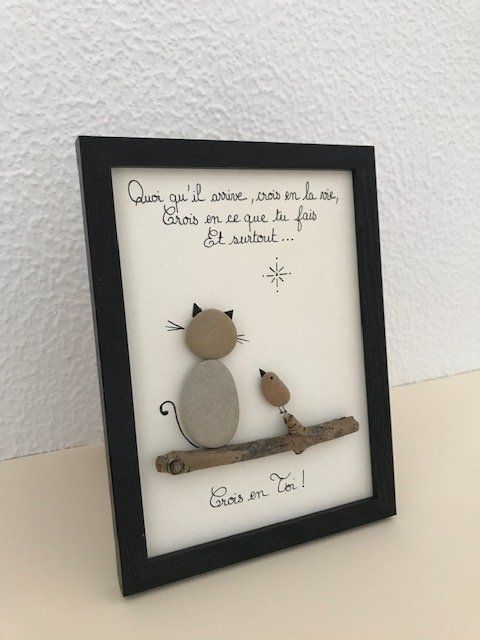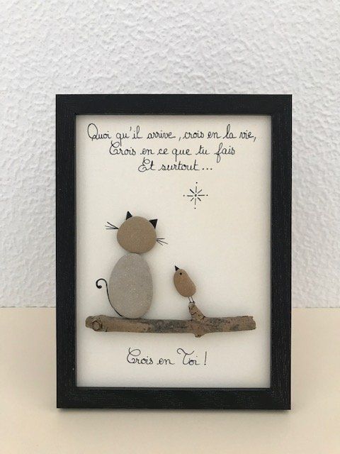 Ce cadre est entièrement imaginé et créé par mes soins avec des galets et du bois flotté depuis mon atelier. Dimension 13x 18cm. Demandez votre tableau personnalisé sur simple demande ! chaque tableau est unique de part la forme unique des galets.