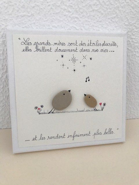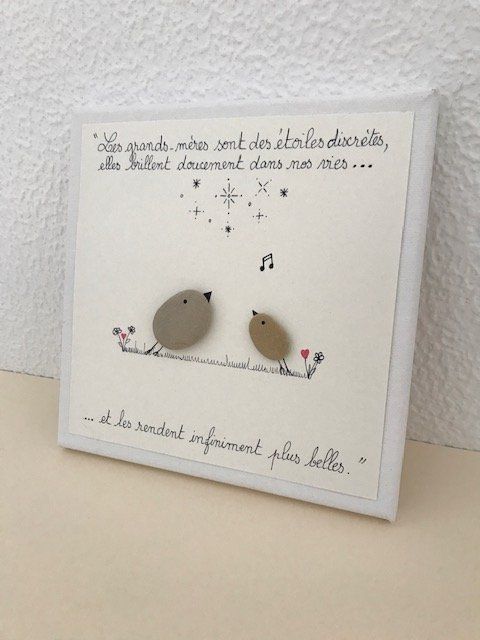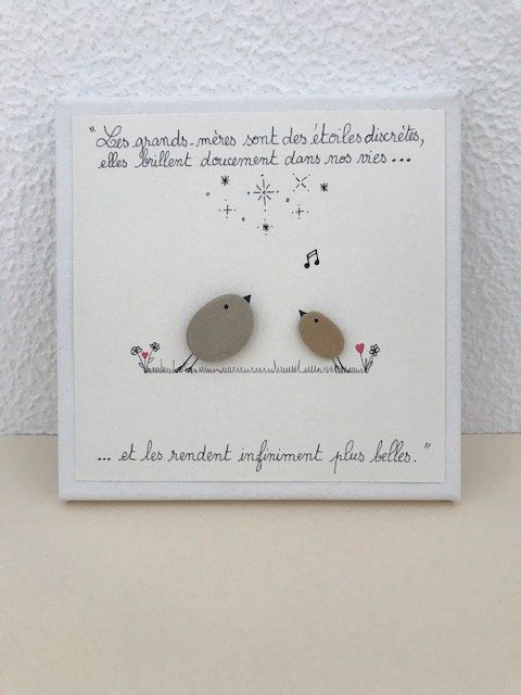 Cadre réalisé spécialement pour fêter les grands-mères à l'occasion de la fête des grands-mères ou pour un anniversaire. Cadeau artisanal et original créé avec des galets et un joli message ! Dimension 20 X 20 cm.