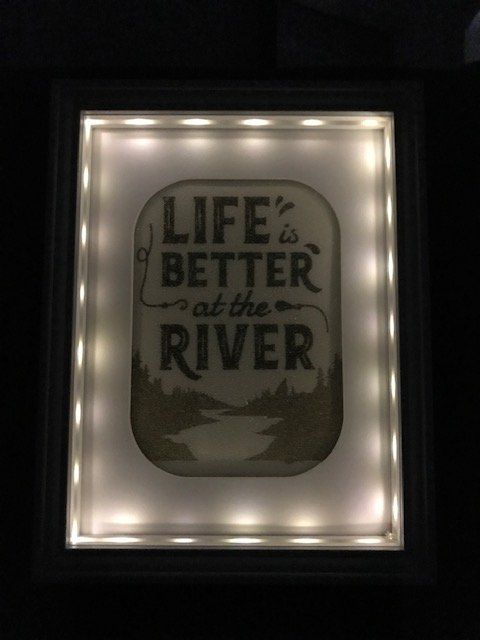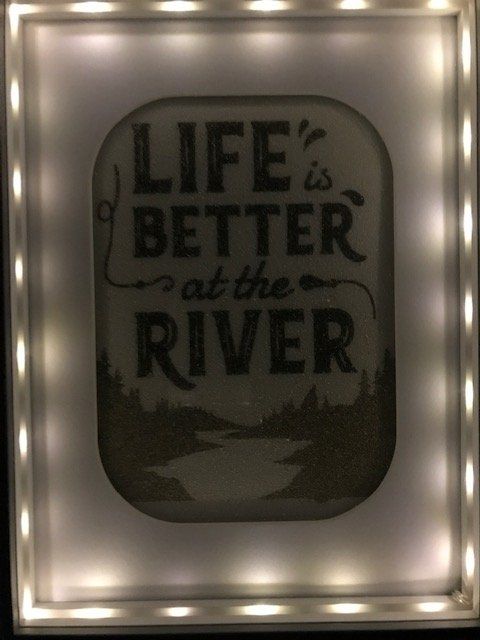 Tableau de sable naturel sous vitrine lumineuse. Fonctionne avec 2 piles (non fournies). Dimension 26 X 20 cm. A personnaliser sur demande !